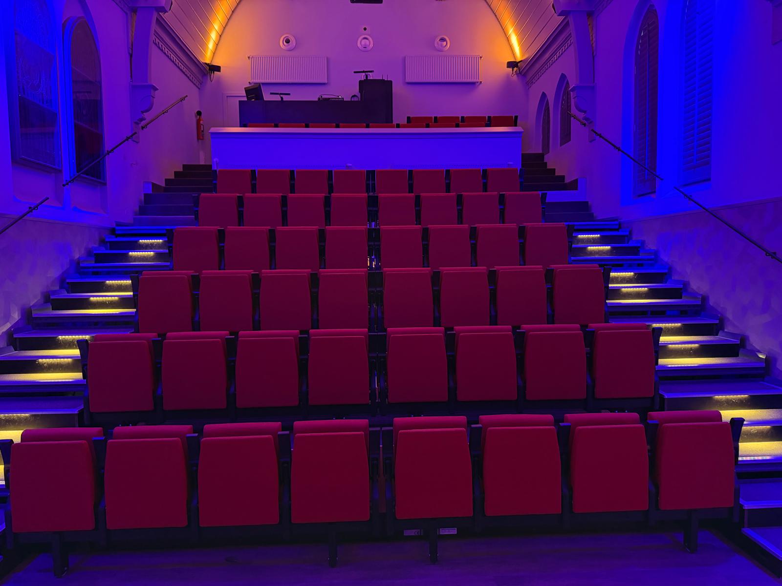 • Theaterzaal leeg (tribunte in)voor vergaderingen – presentaties – workshops – per dagdeel € 85