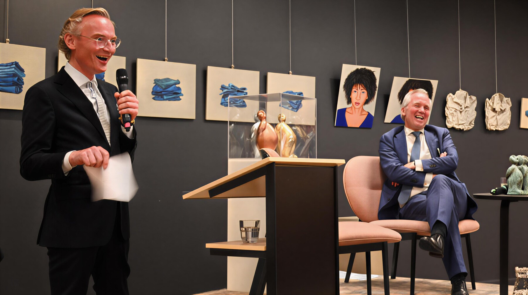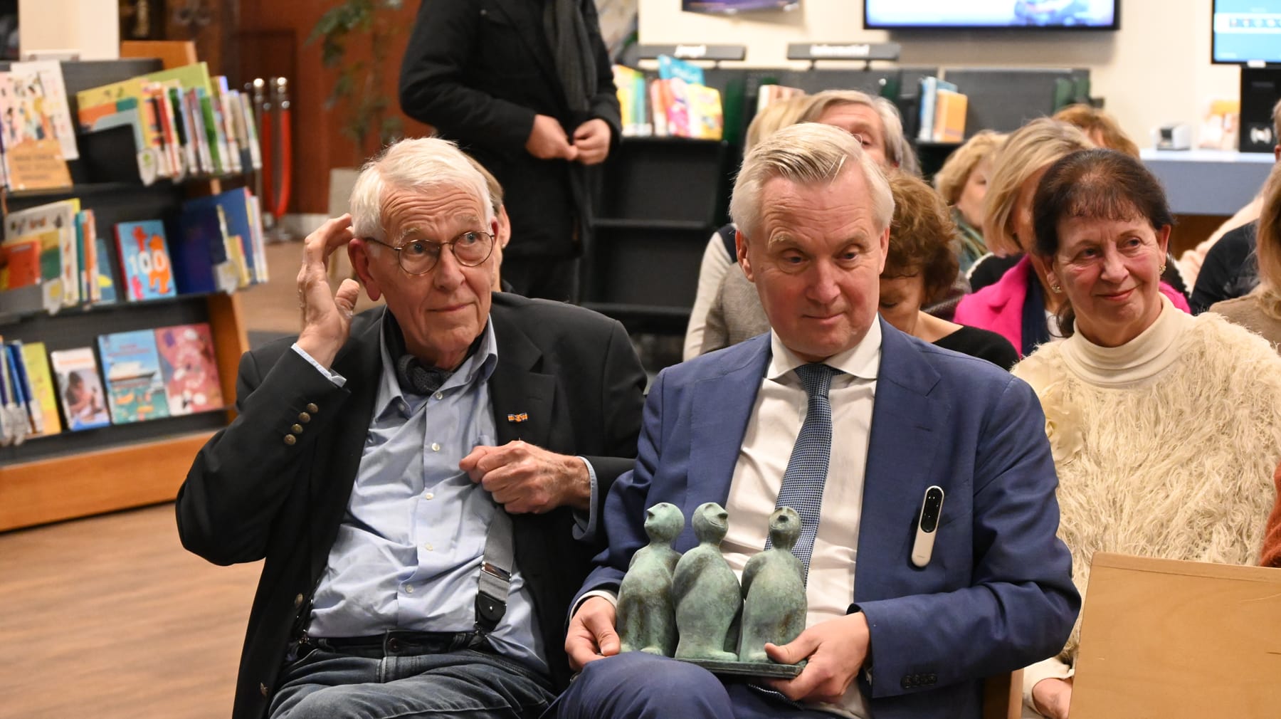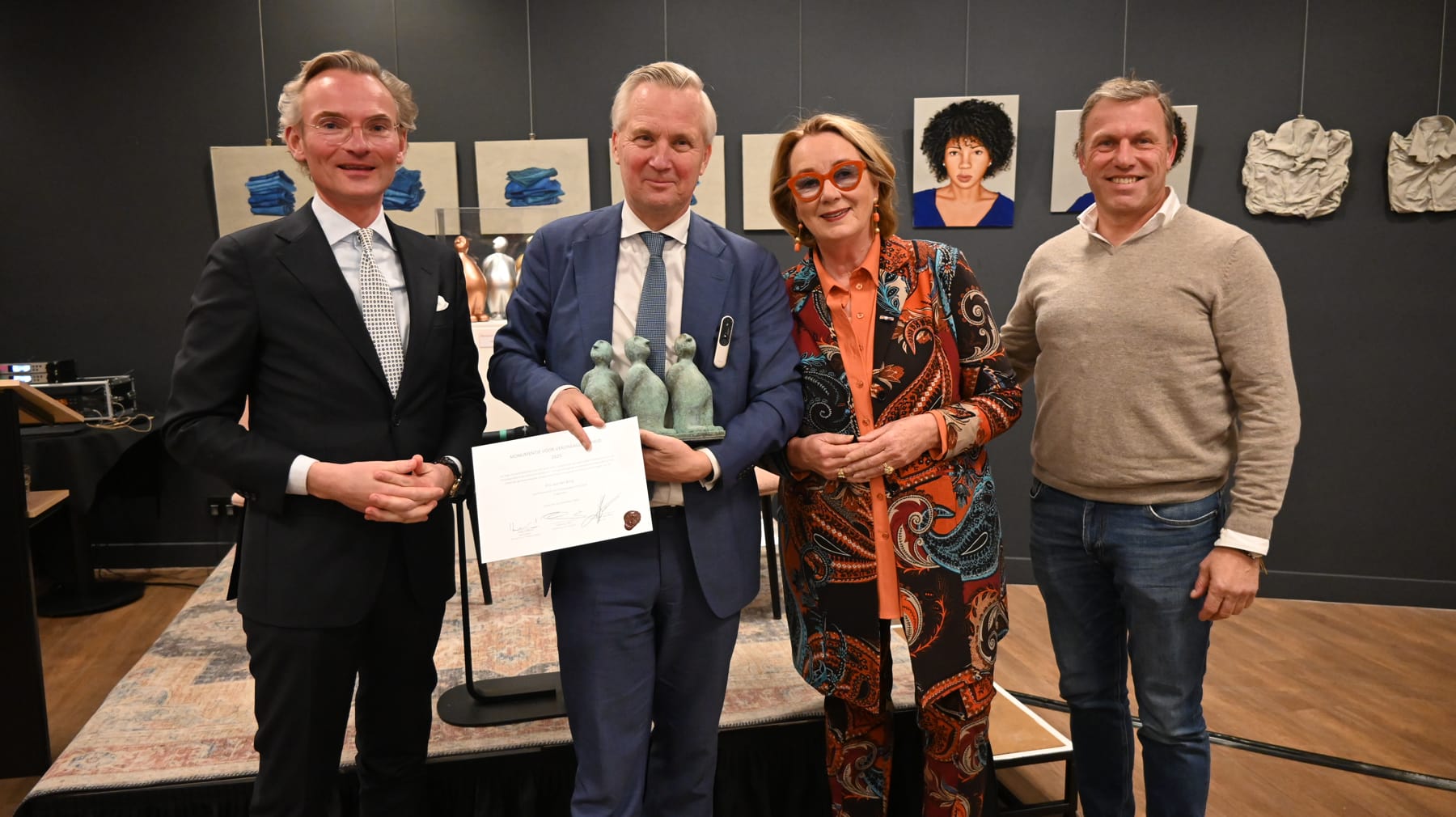 Het is inmiddels traditie om op de Dag van de Eenzaamheid het ‘Monumentje voor Verdraagzaamheid’ uit te reiken aan een persoon die zich meer dan verdienstelijk heeft gemaakt bij dit thema. Dit jaar werd de prijs toegekend aan Eric van der Burg. Heel bijzonder was dat Nanning Mol, burgemeester van Dordrecht en oud-burgemeester van Laren, de laudatio heeft gehouden. Het monumentje is een copy van het grote monument wat bij de entree van Laren staat (bij het hertenkamp) – gemaakt door de Larense kunstenaar Herold van den Berg. Het bestaat uit drie figuren (Happy Gerrit) die ieder een eigen kant op kijken c.q. een visie op de samenleving hebben, maar onder de grond verbonden zijn met elkaar. Ze hebben een klein buikje en kijken tevreden, dapper en zelfbewust naar de buitenwereld. Alsof ze elkaar verdedigen.