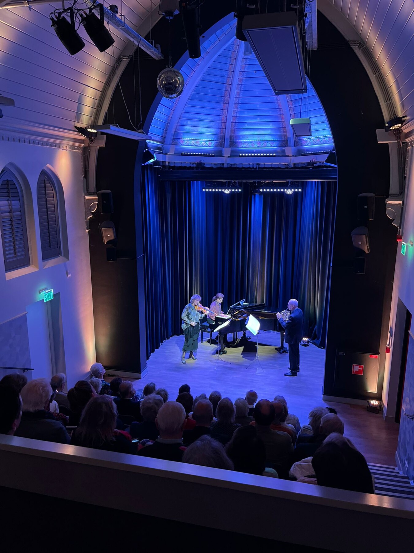 De samenstelling van viool, hoorn en piano is zelden te horen op de concertpodia, maar dit concert bewees waarom dat onterecht is. De heldere, lyrische toon van Michaela Hollmannová’s viool ging eendialoog aan met de warme, ronde klank van Sergei Dovgaliouks hoorn. Alla Libo verbond de twee werelden met haar kleurrijke en expressieve pianospel, waarmee ze zowel de begeleiding verzorgde als solistisch schitterde.