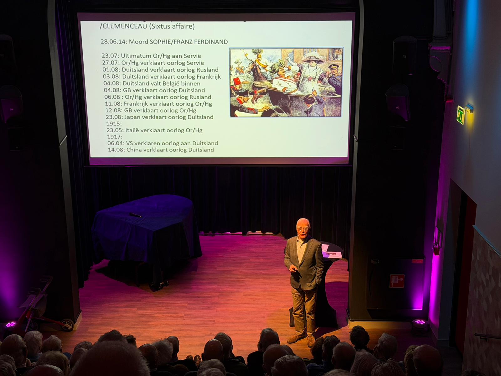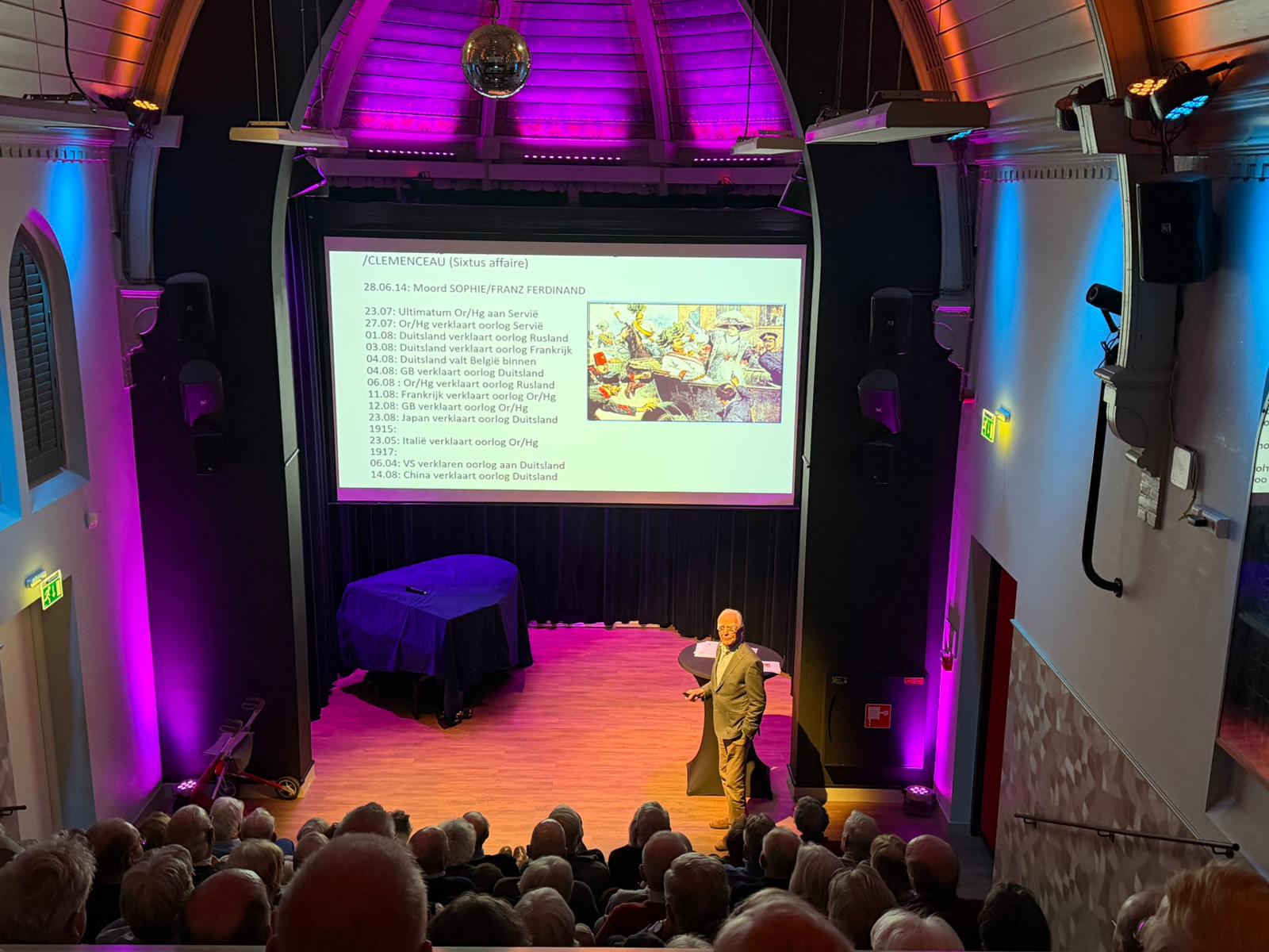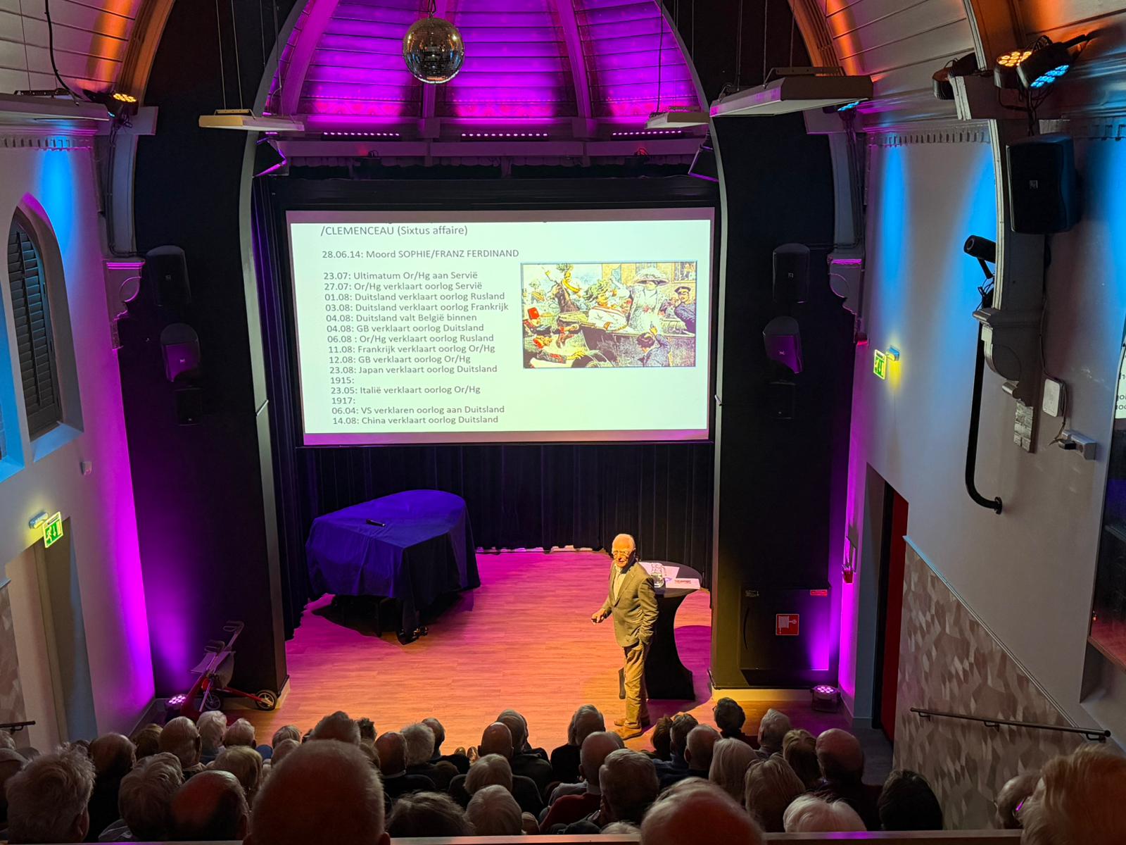 Het was afgelopen donderdagavond 19 maart 2026 dringen voor een plekje in het Brinkhuis Theater. De gratis lezing van Nico Wegter over het Verdrag van Versailles trok een volle zaal met geïnteresseerden die benieuwd waren naar de lessen die dit historische document ons anno 2026 nog altijd te leren heeft.